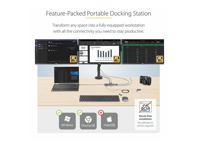 StarTech.com Adaptateur Multiport USB-C Triple Moniteur, HDMI, DP, 4x USB
