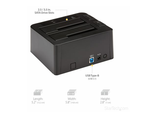 StarTech.com Dock pour Disques Durs 2 Baies, USB 3.1 à 2,5/3,5" SATA III