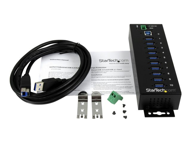 10 ports - Industriel Concentrateur USB - Avec protection contre surtensions/DES - Métal - Rail DIN - Alimenté - concentrateur (hub) - 10 ports